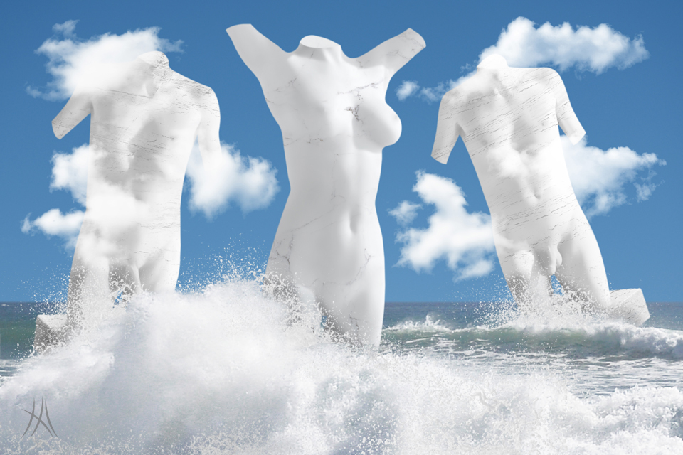 Transformer les corps humains en torses sculptés et aussi, au sein d’une même image, les représenter sous des aspects différents offrent plus de liberté pour développer l'imaginaire.